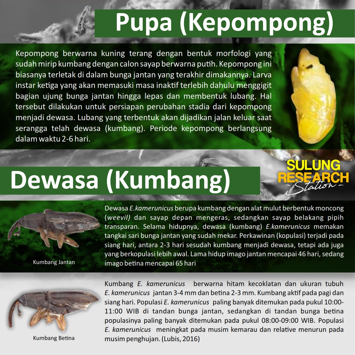 Elaeidobius kamerunicus merupakan serangga yang berperan sebagai polinator pada tanaman kelapa sawit dan paling efisien.