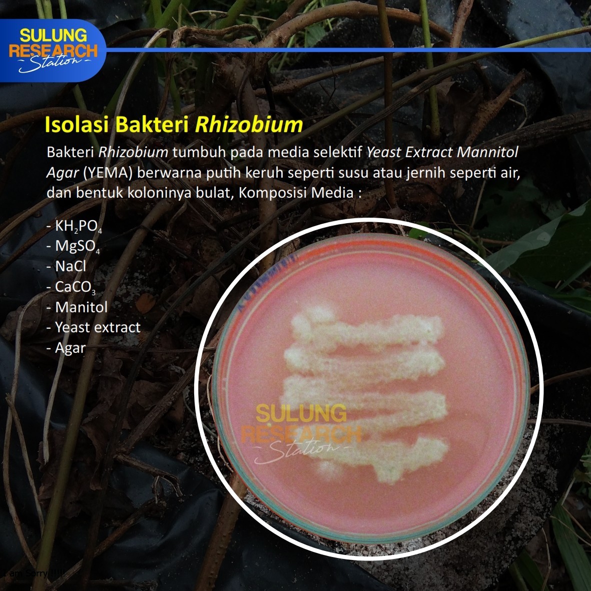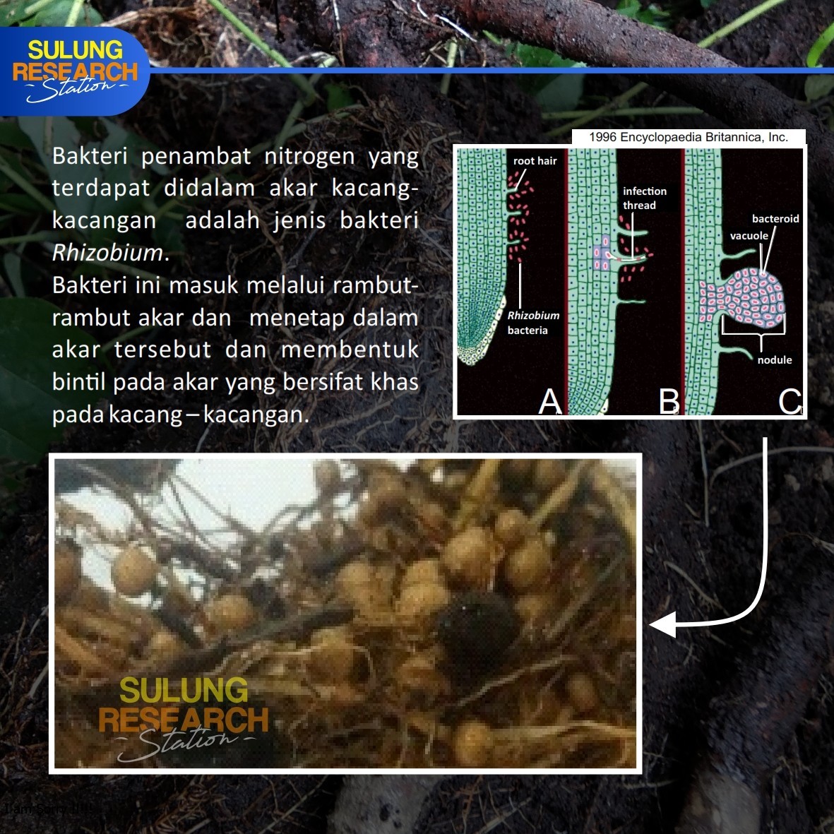 January 28, 2020 by aan in POST Bakteri Penambat Nitrogen SIMBIOTIK 1 2 3 4 5 6 Bakteri bintil akar atau rhizobia merupakan bakteri rizosfir yang mampu melakukan penambatan nitrogen udara melalui simbiosis dengan tanaman kacang-kacangan(famili Leguminosae). Tags citraborneo palmoil research sulungresearchstation Share previous post TURNERA SUBULATA next post SERANGGA PARASITOID
