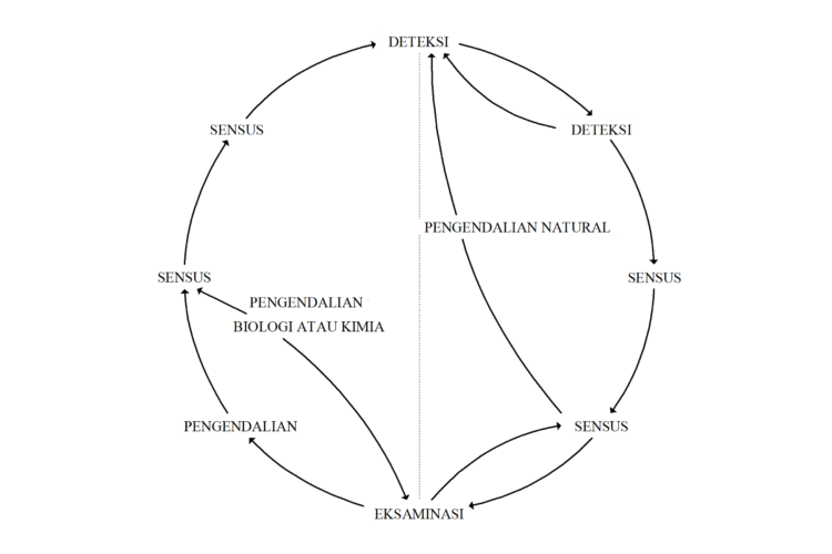 Ketika sampel hama sudah terkumpul pada saat melakukan sensus, tahap selanjutnya adalah eksaminasi atau pengamatan sampel dengan tujuan untuk menentukan status faktor musuh alami di daerah serangan. Jika didapati faktor musuh alami yang cukup efektif untuk menekan populasi hama maka tidak diperlukan tindakan apapun. Sebaliknya jika kematian hama oleh faktor musuh alami kurang atau tidak ada maka segera dilakukan tindakan pengendalian.