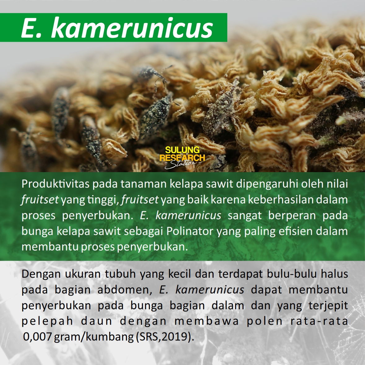 Elaeidobius kamerunicus merupakan serangga yang berperan sebagai polinator pada tanaman kelapa sawit dan paling efisien.
