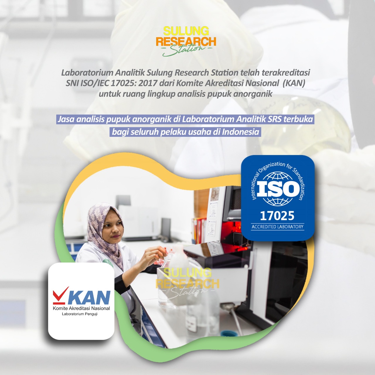 Laboratorium Analitik Sulung Research Station telah terakreditasi ISO 17025 : 2017 oleh KAN untuk melaksanakan analisis pupuk anorganik.